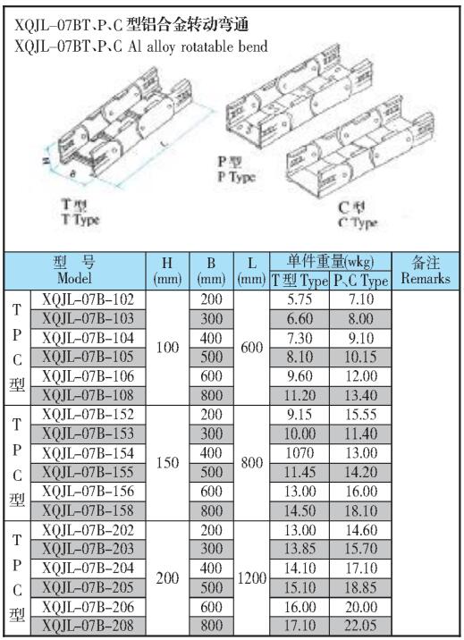 XQJL-07BT、P、C型鋁合金轉動彎通