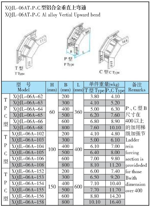 XQJL-06AT、P、C型鋁合金垂直上彎通生產廠家