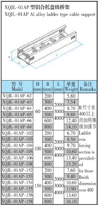 本文將會在XQJL-01AP型鋁合金托盤級橋架的型號、用途、規格、重量等方面做詳細的說明與介紹,江蘇海馳電氣制造有限公司作為是專業的XQJL-01AP型鋁合金托盤級橋架生產廠家,為您選購適合自己的產品做一定的指導是必要的。