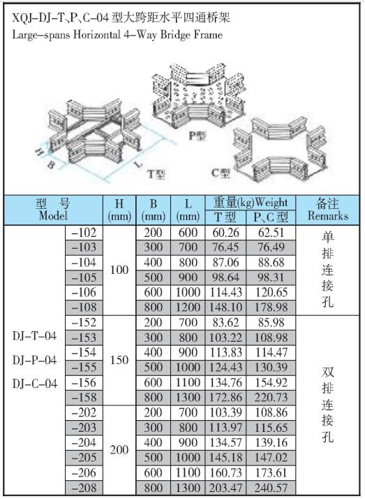 XQL-DJ-T、P、C-04型大跨距水平四通橋架生產廠家
