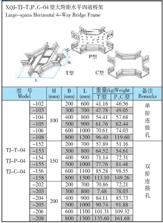 XQL-TJ-T、P、C-04型大跨距水平四通橋架生產廠家